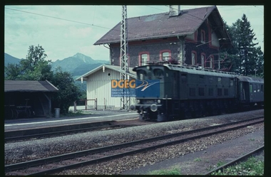 MotivE16 021 vor SchnelLzug im bahnhof Bergen / Obb. ("z" 15.11.76, "a" 28.4.77)