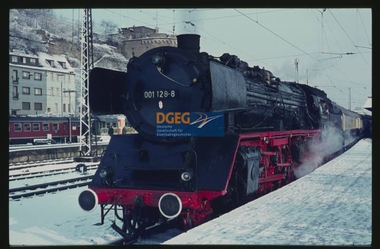 | Motiv | 001 128 mit Dampfsonderfahrt "Wiedersehen mit dem vorkriegs Rheingold" in Koblenz Hbf. ("z" 14.8.70, "a" 27.11.70) |